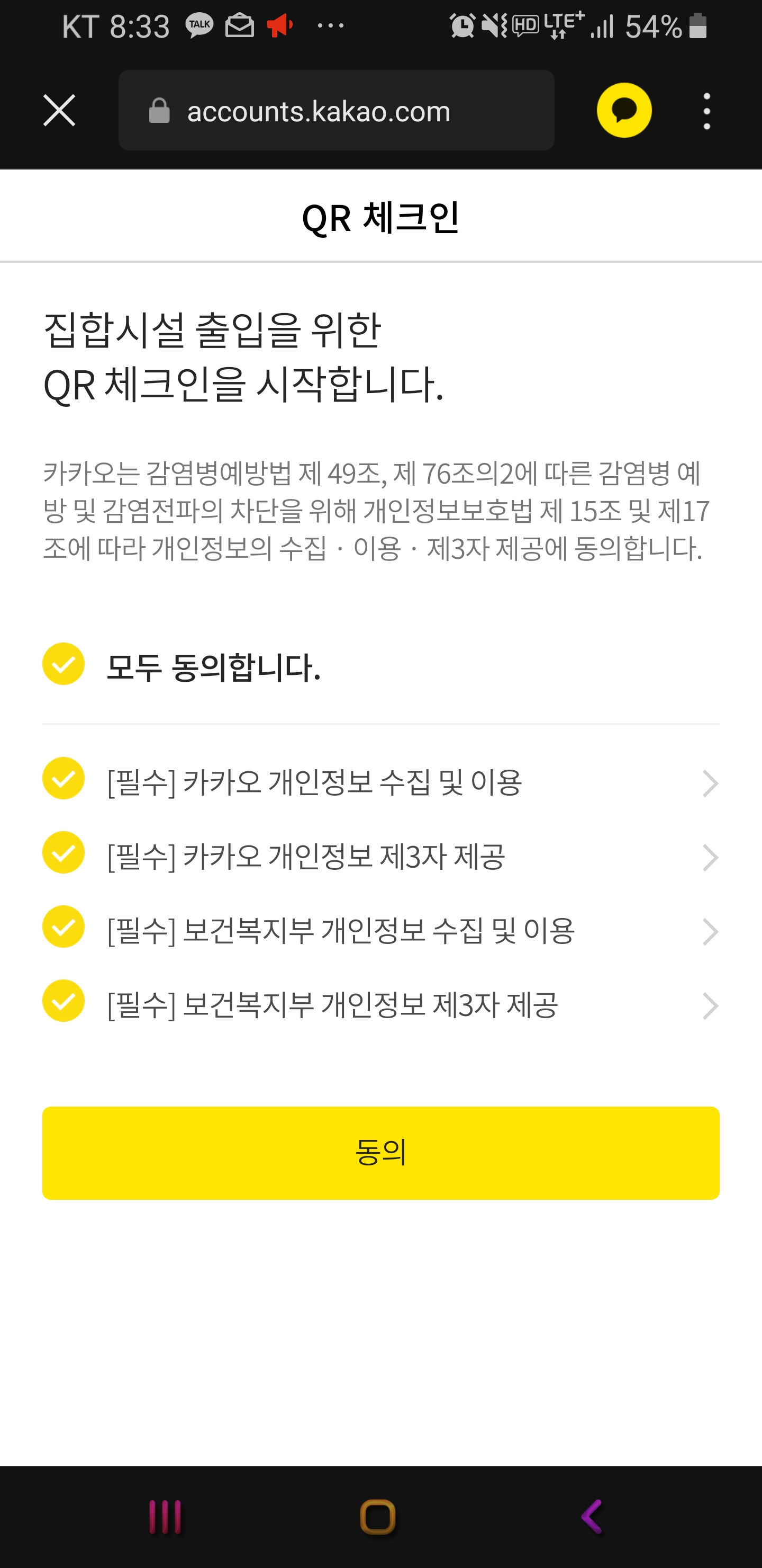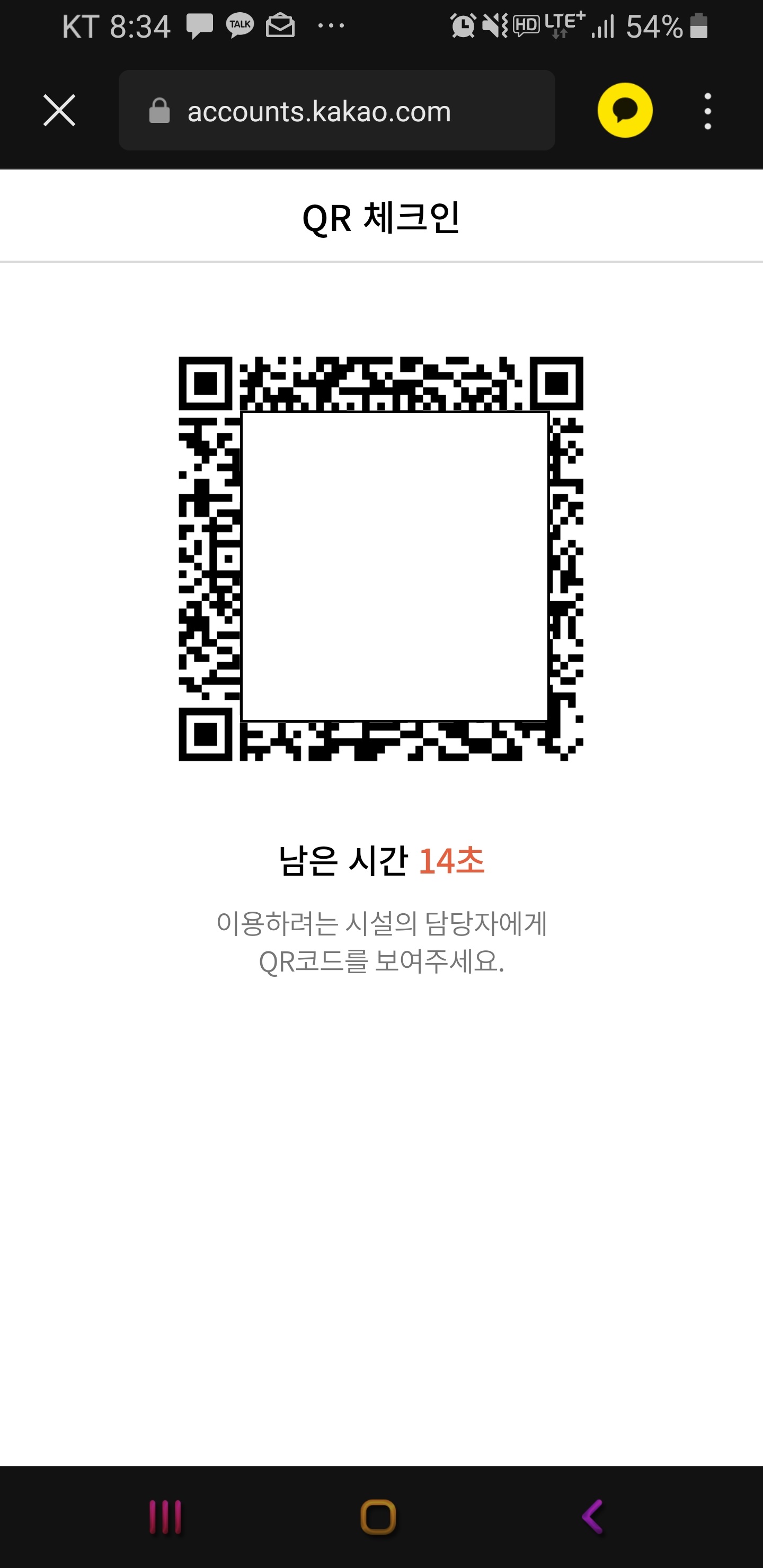 이제 간단하게 확인 한 후에는 아래와 같이 카카오톡 큐알코드가 발급되게 되네요.