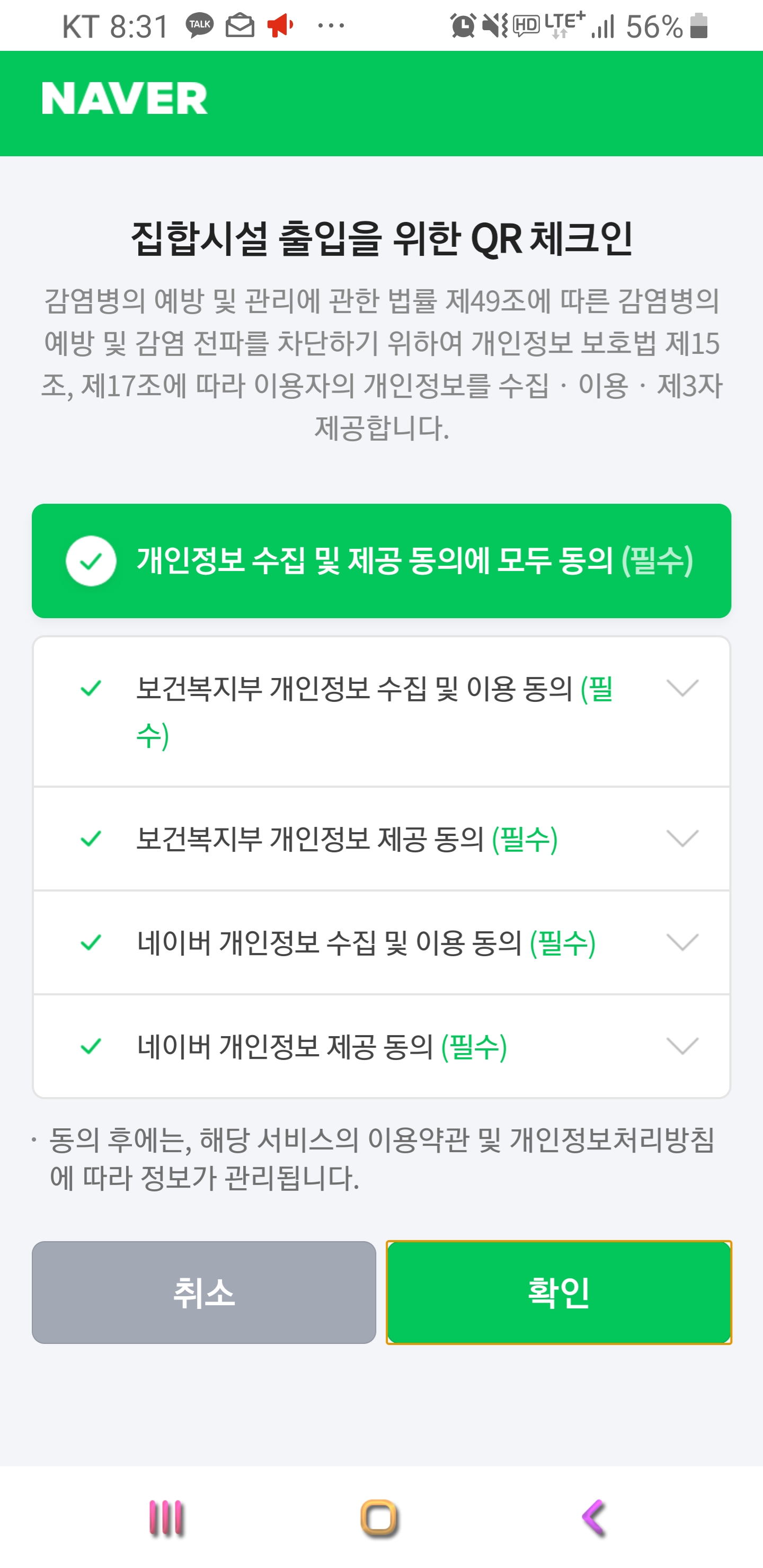 카카오톡 큐알 코드 스캔 그리고 네이버 큐알 코드 스캔에 대해서 알아 보았네요 일반 시설 및 중점 관리 시설에 방문 하신다면 꼭 큐알 코드 체크인을 활용하시길 권해 드립니다. 행복하세요.