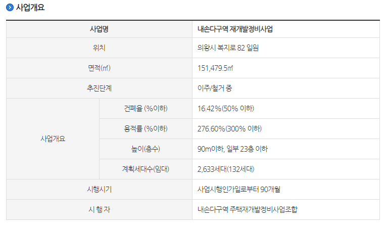 사업명은 내손 다구역 재개발 정비 사업입니다.