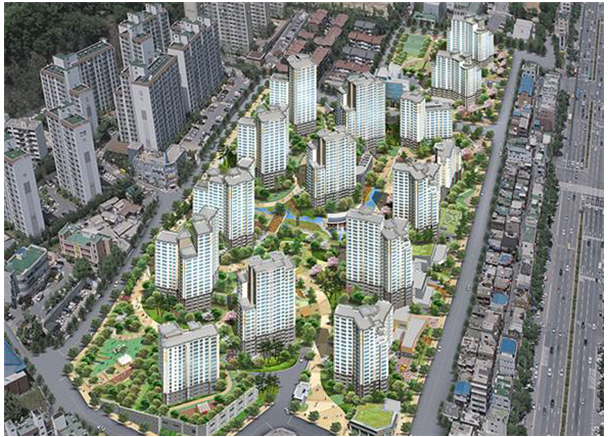 이미 완공된 푸르지오 아파트 재개발과 이번에 단대 오거리 역 근처에서