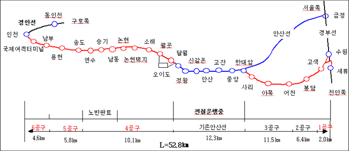 신설되는 샘이 되네요. 약 6.4km 구간 신설되네요. 이로서 수원 인천 간 52.8km 노선이 완공되는 것이네요.