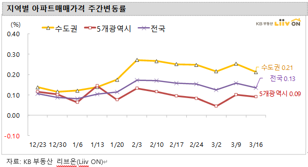 수도권의 경우는 0.21% 상승으로 전주 대비 상승률이 높네요.