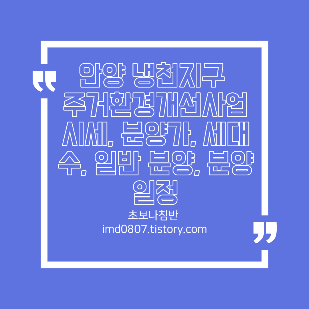 [안양 재개발] 안양 냉천지구 주거환경개선사업 시세, 분양가, 세대수, 일반 분양, 분양일정