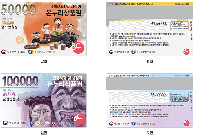 전자상품권의 경우 온라인 전통시장관 쇼핑몰(8개)에서도 사용가능 사전에 BC카드 홈페이지에서