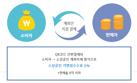 소비자와, 소상공인이 계좌 이체하는 방식으로 결제 진행되네요.