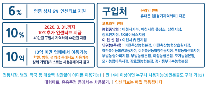 이천 지역 사랑 화폐는 10억 미만의 이천시내 업체에서 사용 가능하네요