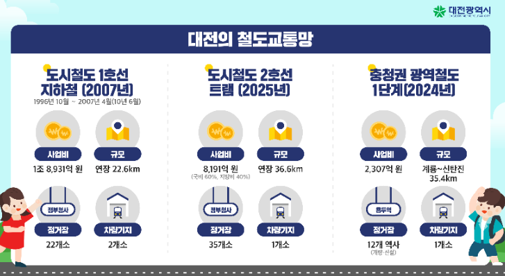 2025년에 도시철도 2호선인 대전 트램을 완공할 예정이네요