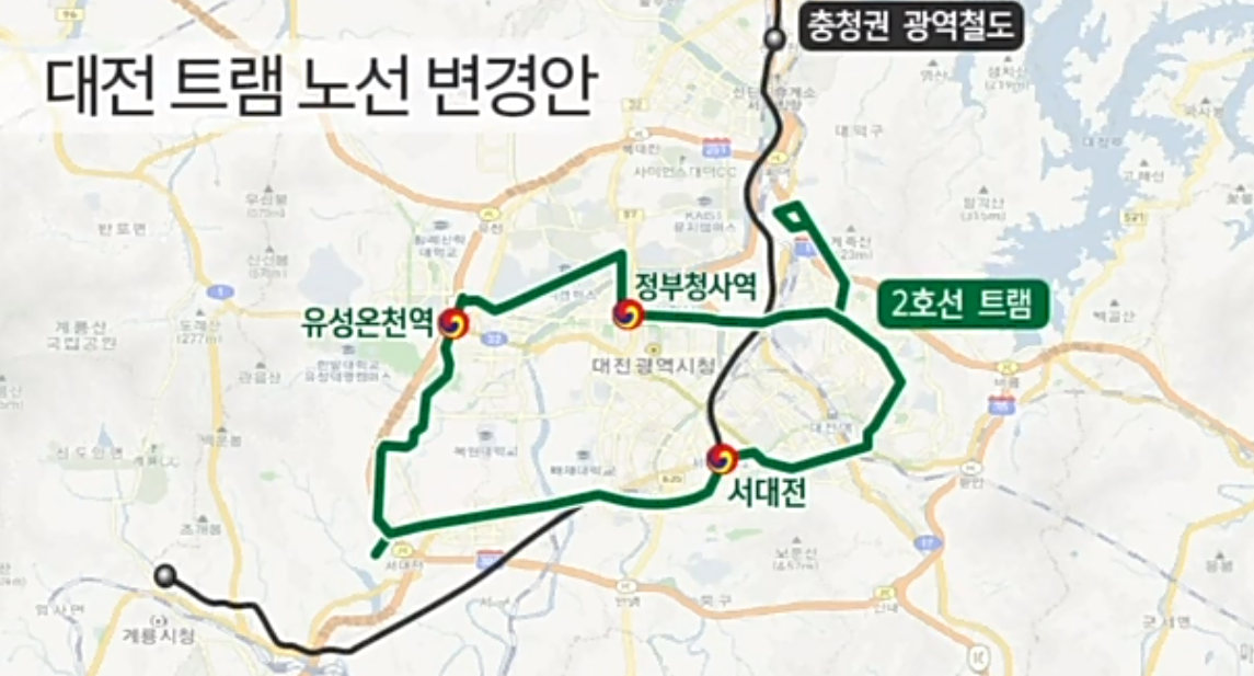 대전 트램 노선 역이 대전시의 주요 지점과 연결되지 않아 사용에 불편함이 있어 이에 대한 개선을
