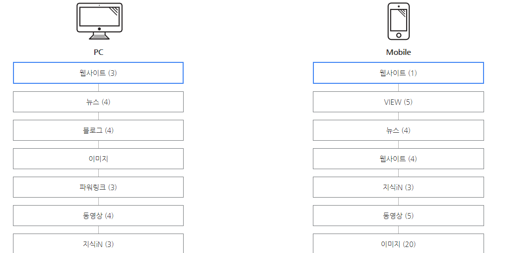 당연히 웹사이트나 블로그가 상위에 있으면 좀더 많은 사람이 유입되겠죠.