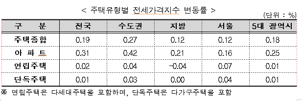 전국 주택종합 전세가격 : +0.19%