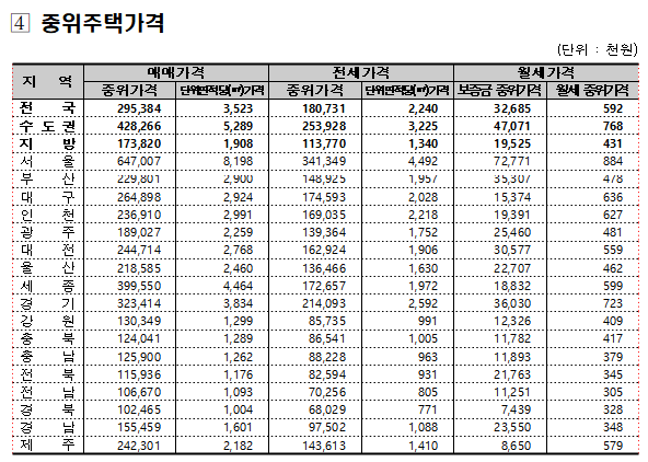 전국 월간 주택종합 전세가격은 0.19% 상승했다. 수도권(0.32%→0.27%) 및 서울(0.16%→0.12%)은 상승폭 축소, 지방(0.11%→0.12%)은 상승폭 확대(5대광역시(0.25%→0.18%), 8개도(0.01%→0.03%), 세종(0.86%→2.63%))됐다.