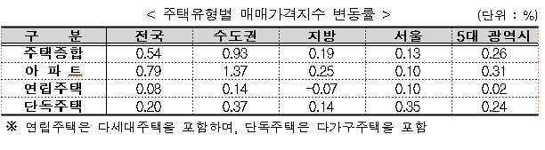 전국 주택종합 매매가격 : +0.54% 상승