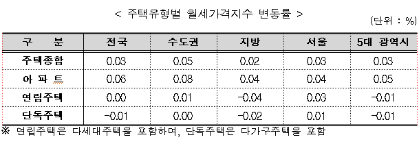전국 주택종합 월세가격 : 0.03%