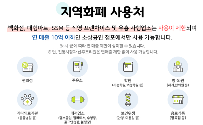 하지만, 백화점 쇼핑센터, 대형 마트, 유흥업소, 연매출 10억 초과 업체에서는 사용이