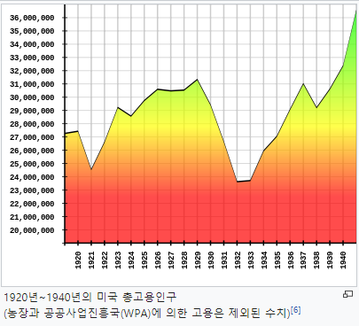 1933년에는 실업률이 25% 대로 절정에 도달했고 사람들의 평균 근무시간이
