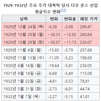 1929년 최고점 대비 89%의 하락이 이뤄졌네요.