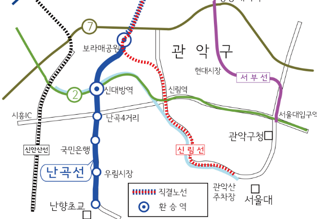 관악구는 동서방향을 잇는 지하철 2호선 단 1개 노선만 지나는 열악한 도시철도 환경으로 주민들이 대중교통 이용에 많은 불편을 겪어왔습니다.