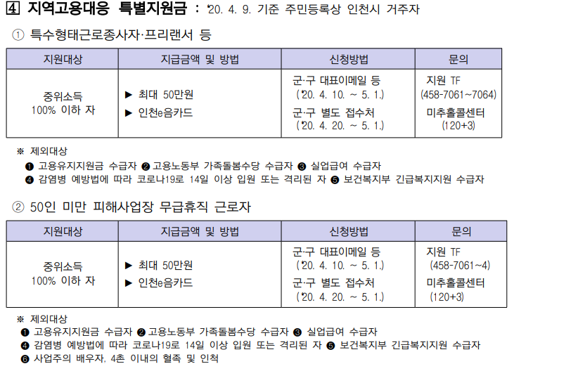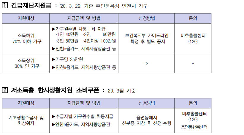 인천시는 다양한 방식으로 인천시민에게 긴급 재난 지원금을 지급하공 있네요.