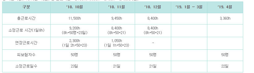 19년 4월 근무 시간이 기존 근로시간 9,783의 20% 이상 감소해야 하네요