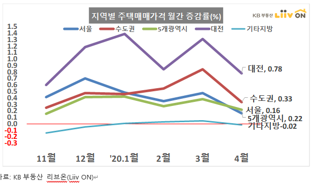 지역별 주택 매매가격 증감률