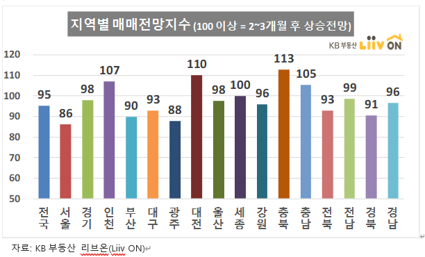 특이하게 대전 110 충북 113 등으로 매매전망지수는 지난달 대비 낮아졌네요.