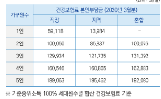 중위 소득 기준은 건강보험료 소득 판정 기준표 기준으로 기준 중위 소득이 100 이하