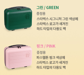 스타벅스 레디백 가방은 두종류가 있네요 아래 그린 스타벅스 시그니처 그린 색상에 스타벅스 로고가 새겨진 하드타입의 다용도 백이네요. 핑크의 경우는 파스텔 톤 핑크 색상에 스타벅스 로고가 새겨진 하드 타입 다용도 백이 되겠네요