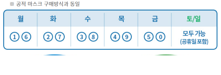 월요일 1,6, 화 2,7, 수요일 3,8, 목요일, 4,9 금요일 5,0 주말은 전체다 신청 가능하네요.
