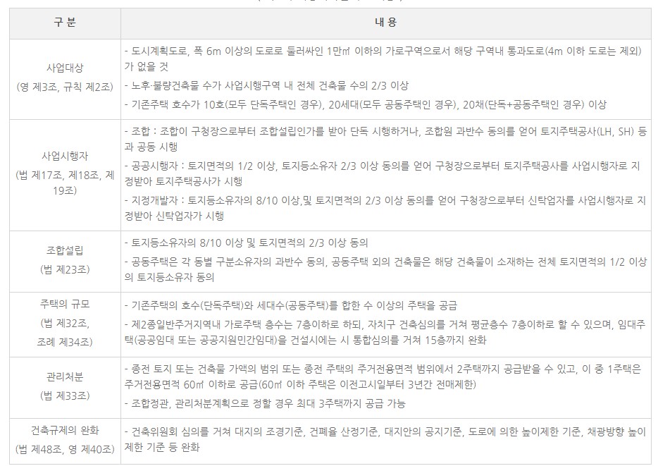 참고용으로 아래 가로 주택 정비 사업에 대해서 간단히 내용 정리하였으니 참고하시기 바랄께요.