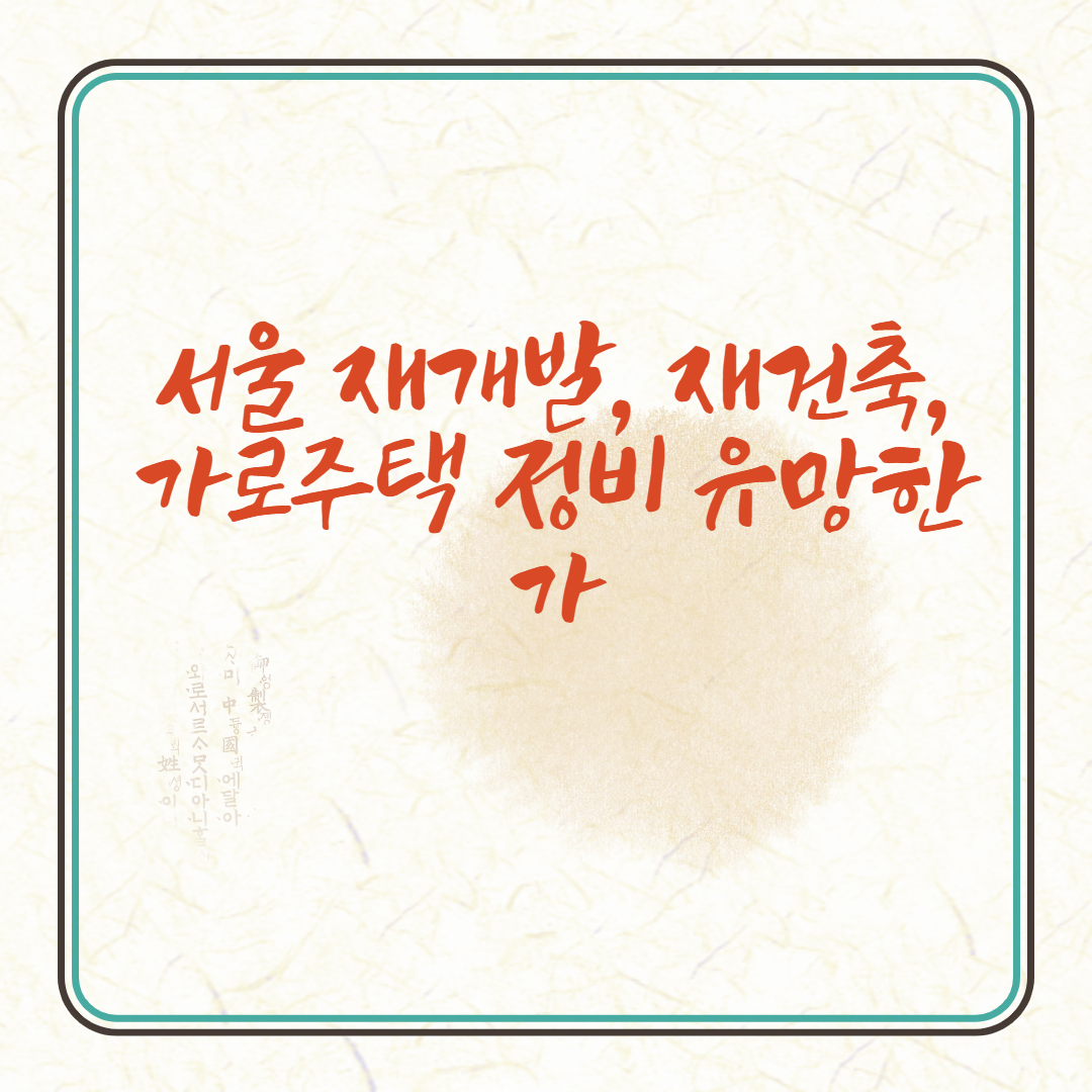 서울 재개발, 재건축, 가로주택 정비 유망한가