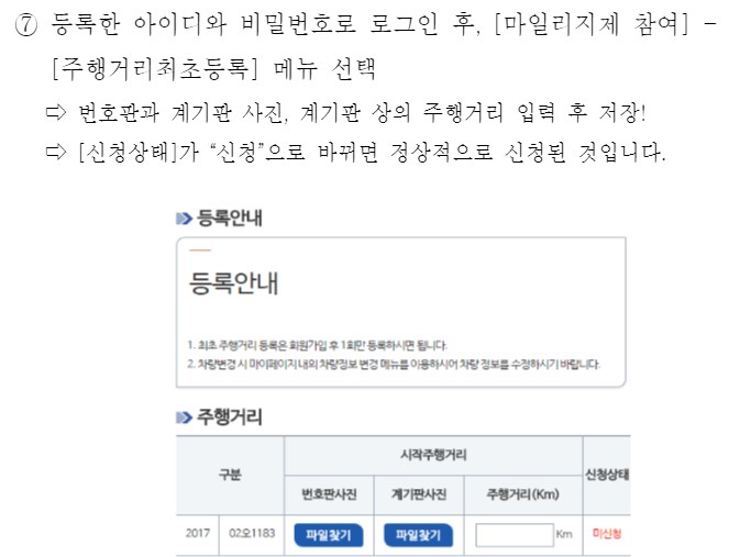 - 또한 가입 후 14일 이내 최초 사진(차량 번호판, 누적 주행거리 계기판)을 등록하면 승용차 마일리지 3천 포인트를 추가로 지급하네요 승용차 마일리지 제도