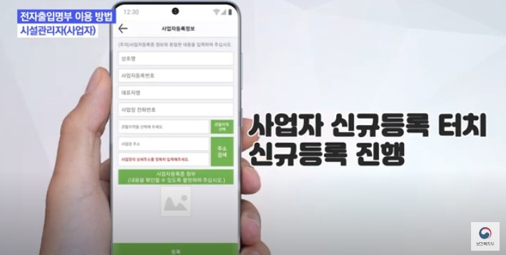 다음은 시설 관리자 및 사업자의 전자 출입 명부 사용 방법입니다. 스마트폰 어플에서 전자출입 명부 어플을 설치해주세요. 사업자 신규 등록 아이콘을 클릭후 본인의 사업자 번호 및 관련 정보를 입력해주세요 꼭꼭 본인의 사업자 등록증을 스캔 또는 사진 촬영해서 준비해주세요. 그후에 본인 인증을 진행해 주세요. 그후에 회원 가입을 진행 하시면 시설 관리자 사업자의 큐알코드 활용을 위한 준비 단계는 끝납니다. 좀더 자세한 사항은 아래 링크를 해두었습니다. 참고하세요.