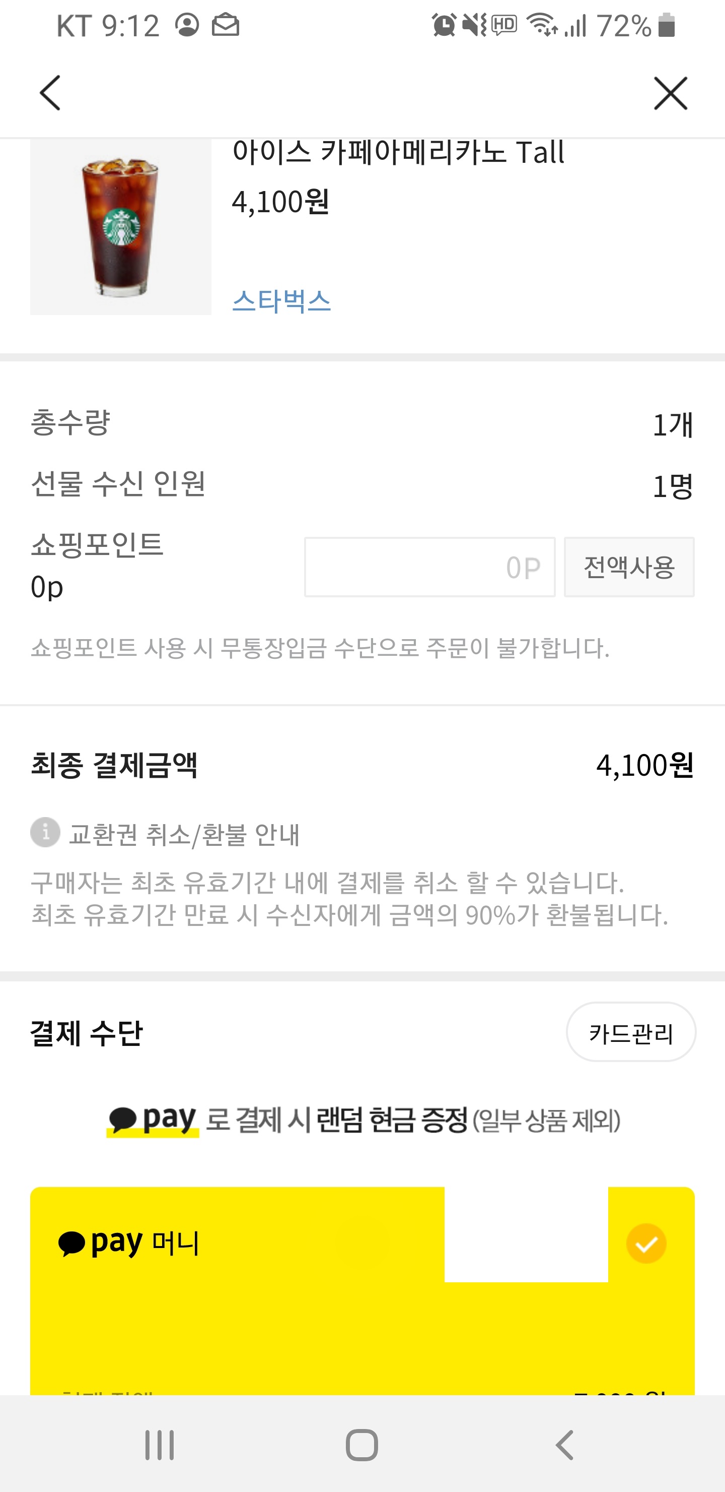 스타벅스 기프티콘 구매 방법 - 주의사항