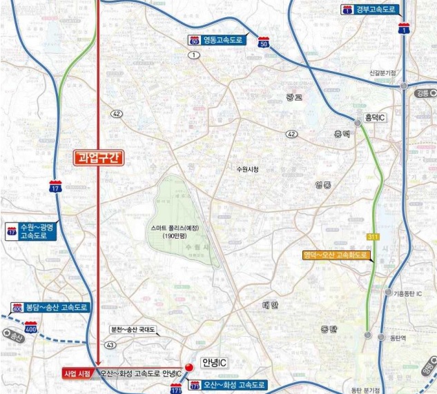 용인 서울 고속도로의 서수지 IC에서 평택 화성 고속도로 안녕 IC까지 미 개통 구간을 연결하기 위한 사업이 첫걸음을 내디뎠다.