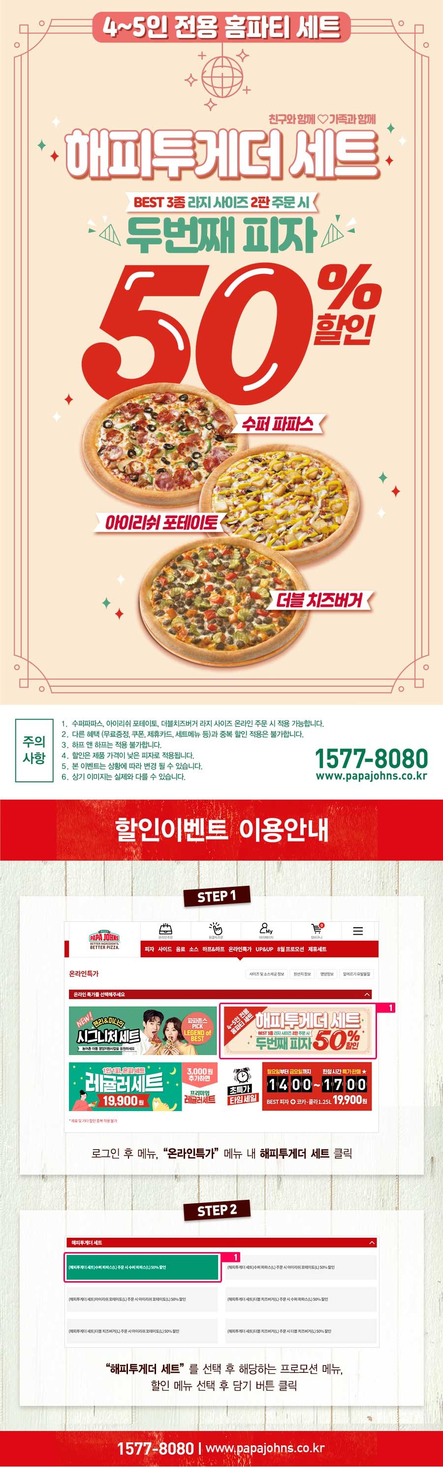 파파존스 피자 할인 - 해피투게더 세트50% 할인