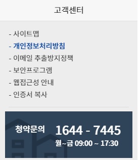 각종 청약 문의는 고객센터 1644-7445로 전화하시면 상담 가능할 것 같네요.