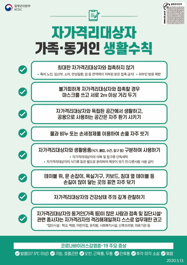 사회적거리두기 2단계 - 자가격리 대상자 가족, 동거인은?