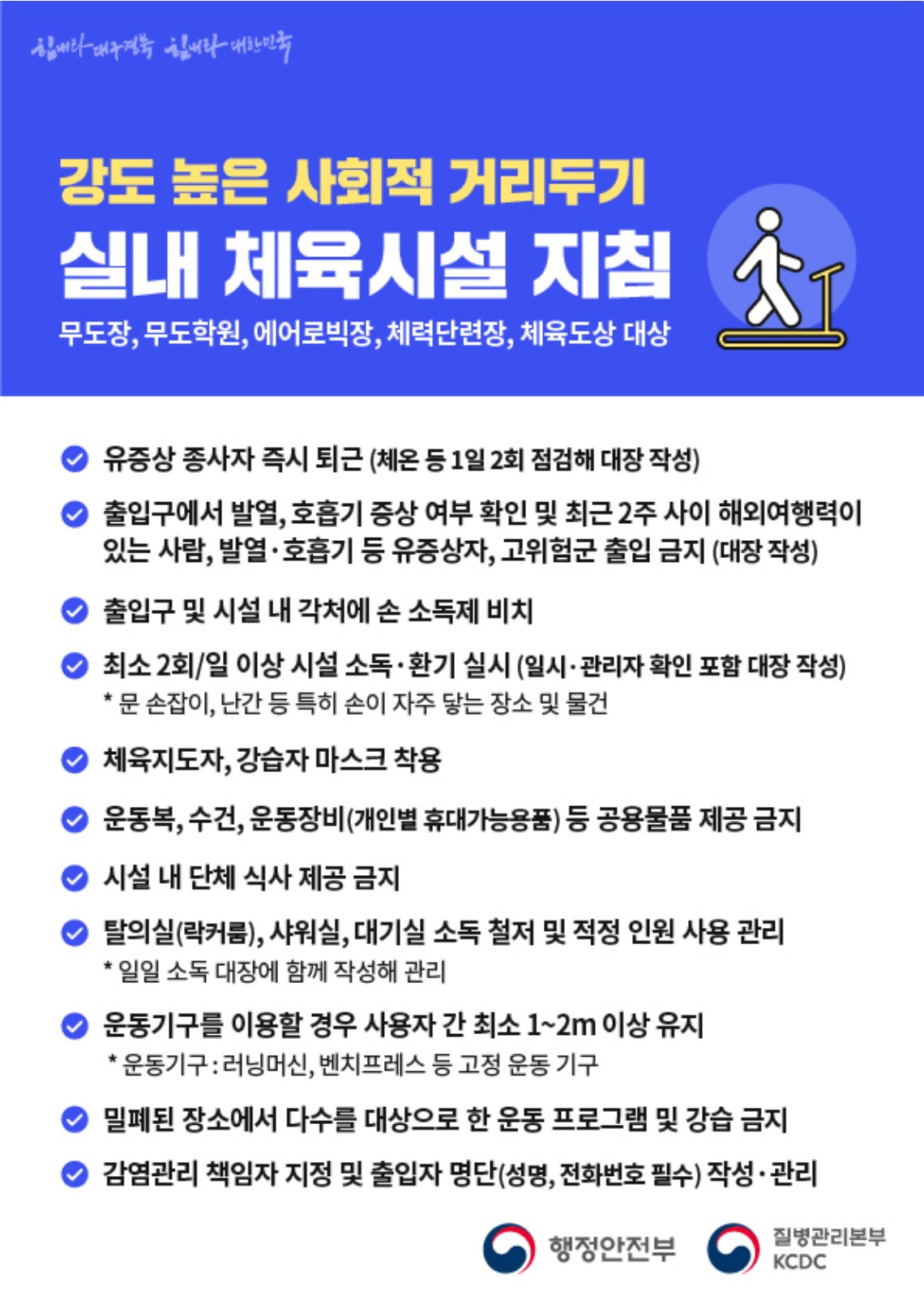 사회적거리두기 2단계 - 실내 체육 시설은 어떻게 하면 될까요