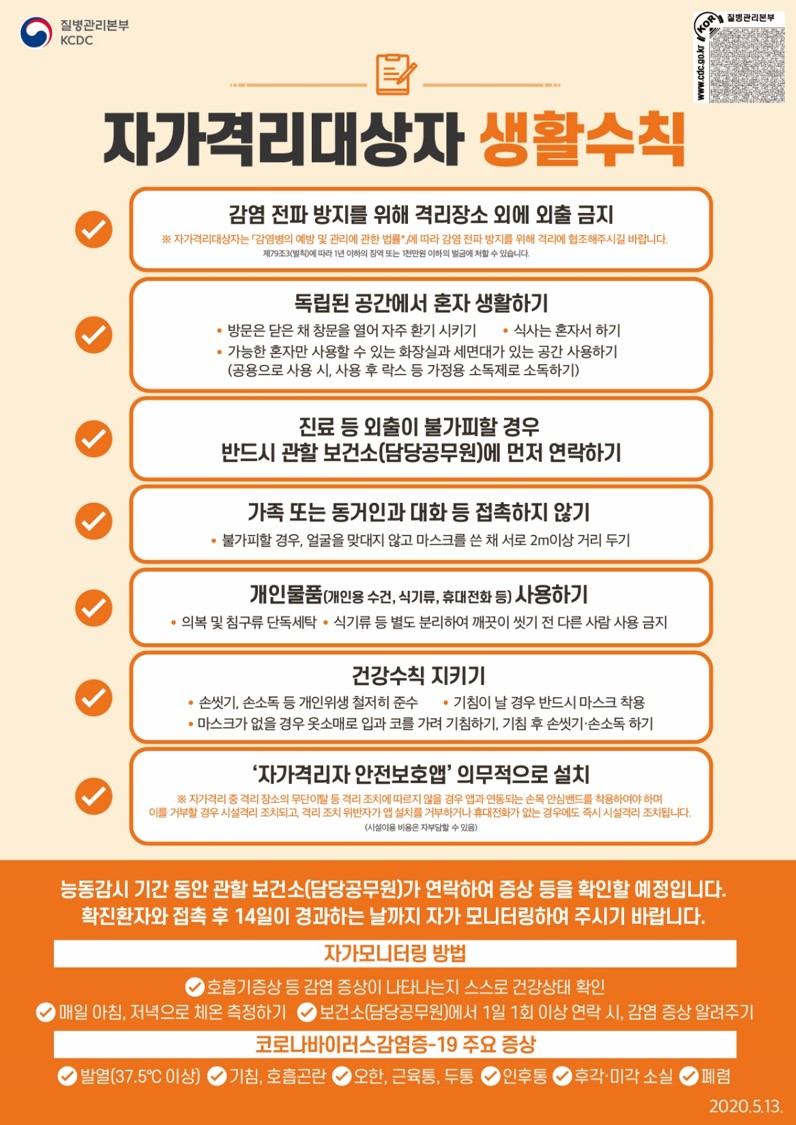 사회적거리두기 2단계 - 자가격리 대상자 행동 수칙
