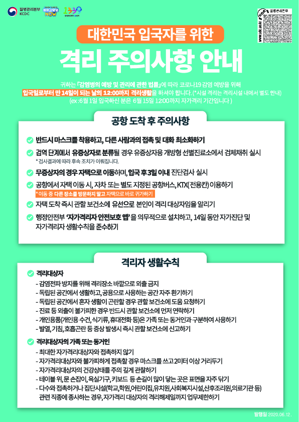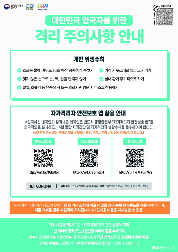 사회적거리두기 2단계 - 출입국자 행동 지침