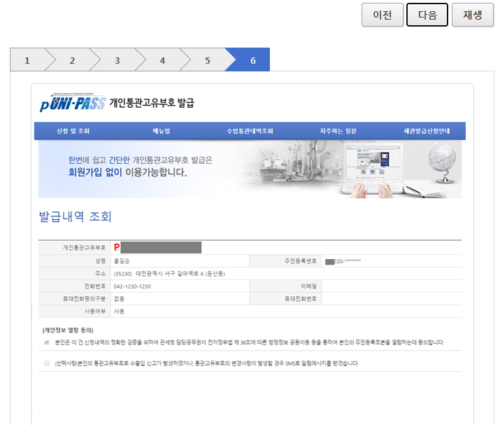 출처: 개인통관고유번호 조회 발급 UNIPASS