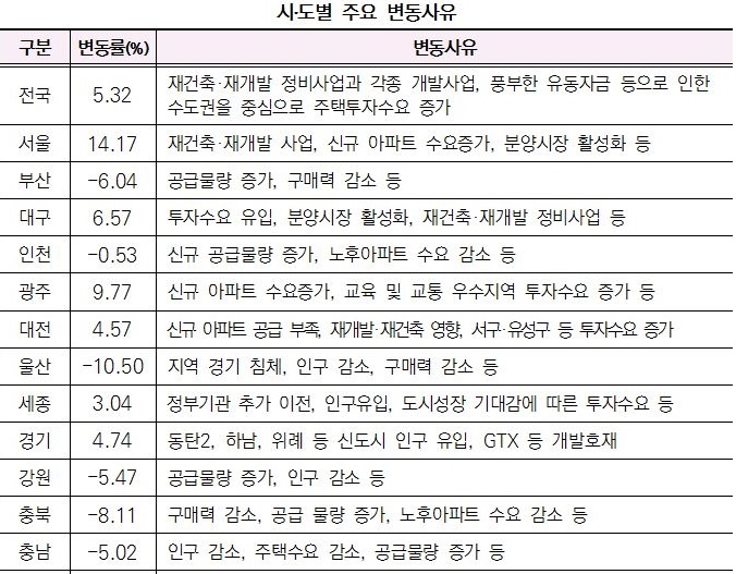 지역별로 공시가격 상승 하락 차이가 발생하였으며, 특히 경기지역 가격 상승이 두드러졌고 그 외 지역 대부분은 가격 하락이 이뤄졌네요