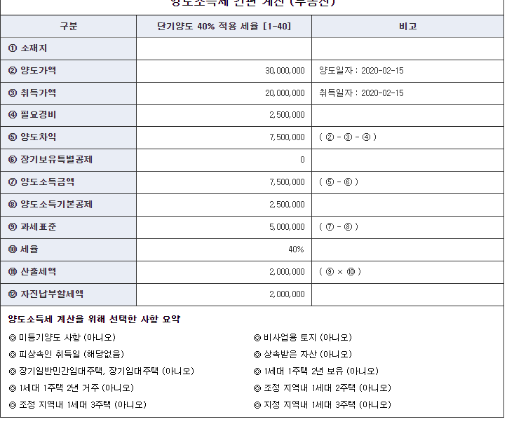 국세청에서는 양도 소득세 자동 계산 방법 툴을 제공하고 있습니다. 그래서 쉽게 소득세를 계산할 수