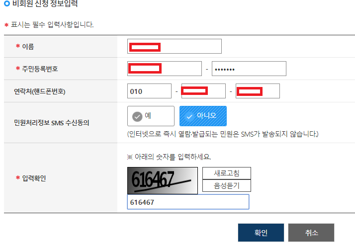 비회원 신청도 몇가지 입력하시면 가능합니다. 번거롭네요.