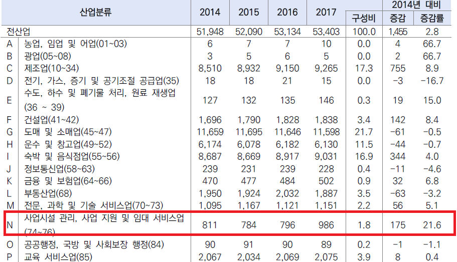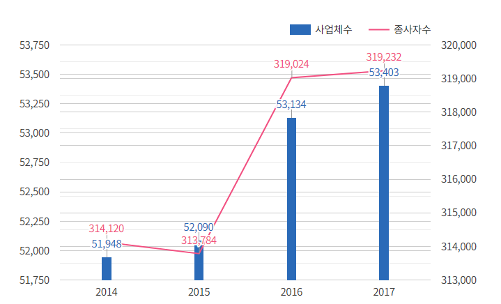 아래 통계에서 보면 간단히 공장이나 사업체수와 종사자 수가 감소 함을 알 수 있습니다.