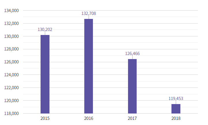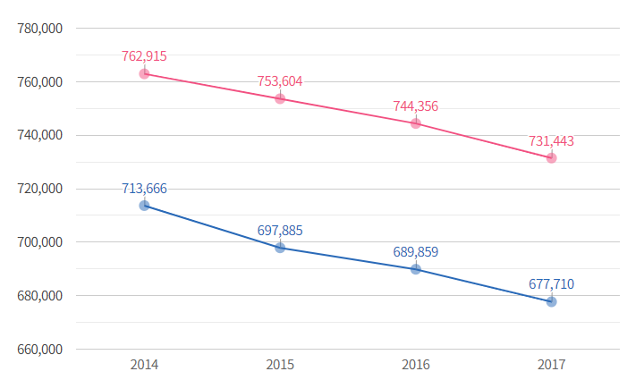 2014년부터 매년 1만 명씩 꾸준히 감소했습니다.