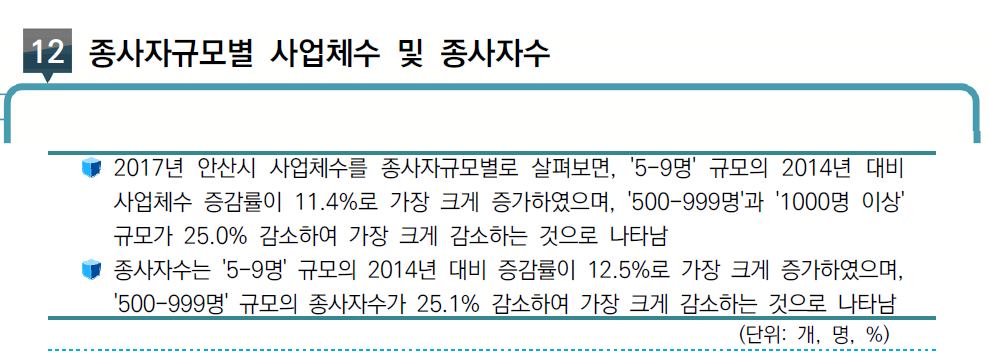 안산 내 사업체 수 및 종사자 수는 2017년까지 증가했습니다. 하지만 문제는 2018년 이후부터 종사자수가 줄어들었습니다. 이는 통계에 없네요.