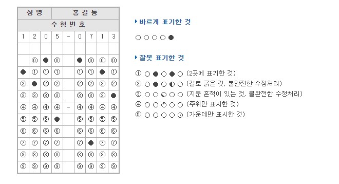 수능 OMR 카드작성 요령