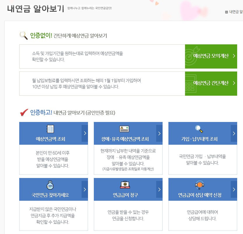 번거롭다면 인증 없이 간단하게 예상 연금을 알아 볼수 있습니다.
